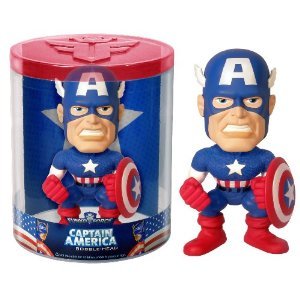 America's ultimate hero! This Captain America Bobble Head is ready to protect and serve. He makes a wobbling, fun-filled addition to any Marvel collection! He's ready to protect and serve! This super-deformed Captain America Funko Force Bobble Head is an excellent addition to your Marvel collection. Complete with articulated arms, he's here to prove that he really is America's ultimate hero and a fun-filled wobbler, too!
